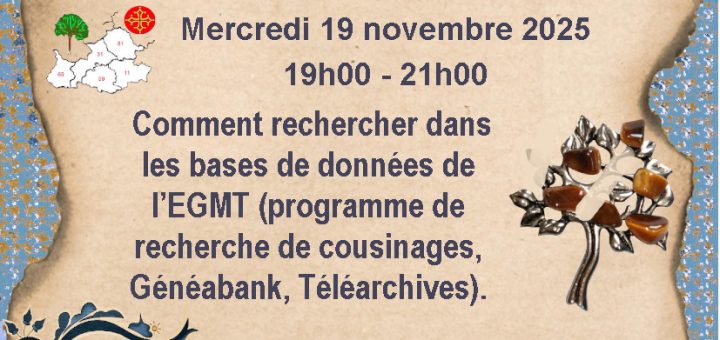 Prochaines rencontres : – jeudi 13 novembre, de 14h à 17h. Saint Girons – https://egmt.org/saint-girons/ – dimanche 16 novembre, de 15h à 18h, Pamiers https://egmt.org/pamiers/ + Rencontres Geneanet – lundi 17 novembre, de 12h45 à 14h et de 17h30 à 19h, Foix https://egmt.org/foix/ – lundi...