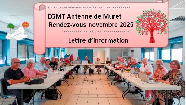 Prochaines rencontres : – les mardis, de 14h à 17h – https://egmt.org/permanence-muret-antenne/ Toutes les Permanences sur >>> Détail des Permanences Lettres d’informations de Muret – Souvenirs : (cliquer sur l’image pour découvrir toutes les...
